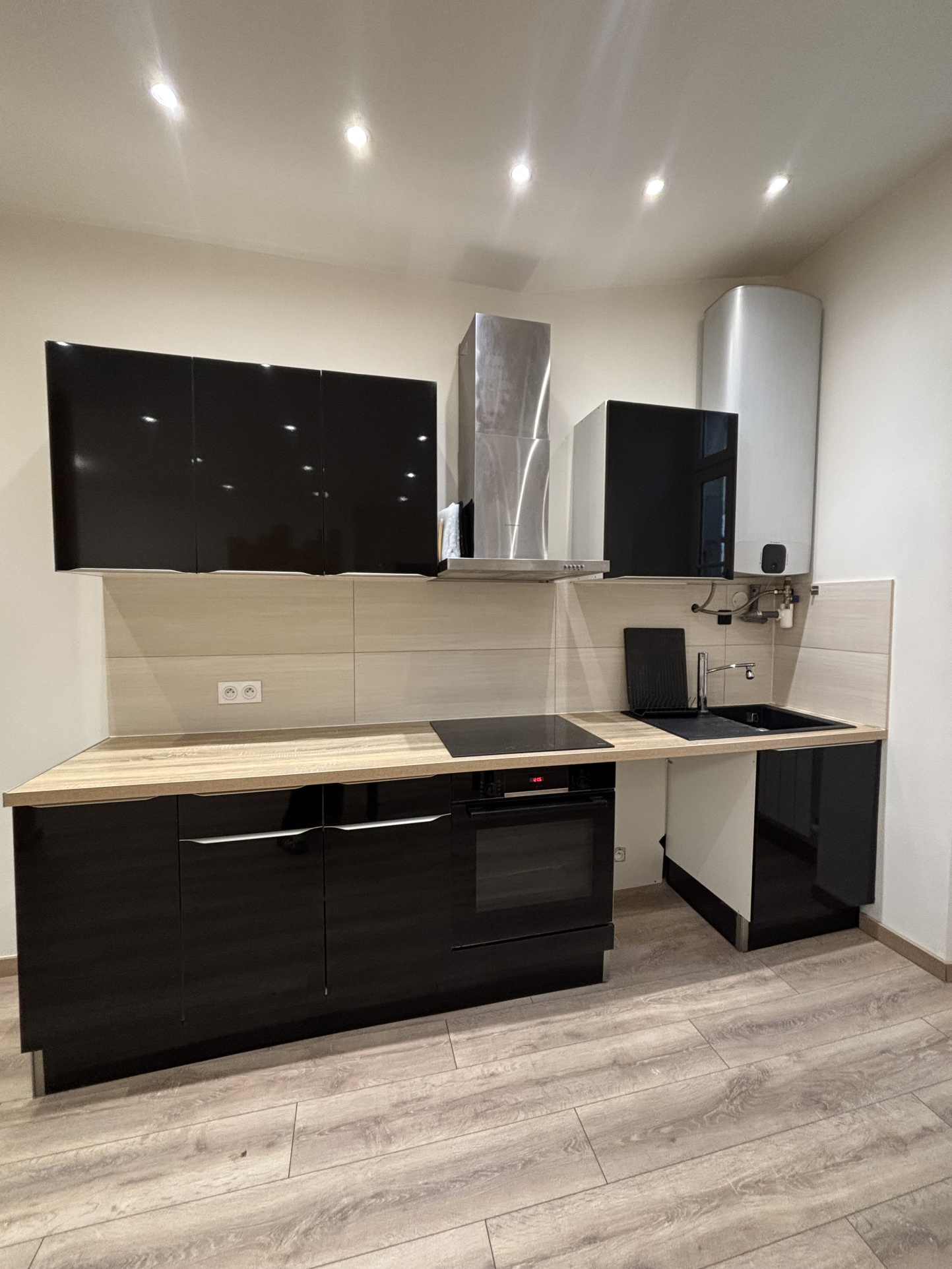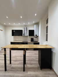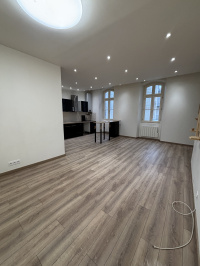 APPARTEMENT T2 PLEIN CENTRE VILLE DE CASTELNAUDARY DANS UN IMMEUBLE DE CARACTERE CUISINE EQUIPEE ET AMENAGEE AVEC UN BAR EN SEPARATION OUVERTE SUR LE SEJOUR/SALLE A MANGER UNE CHAMBRE AVEC DRESSING ET SALLE D'EAU/WC LIBRE